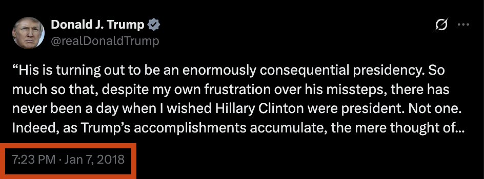 🧵/19 Here's the Trump truth(picrel) I alluded to in that last post.... imo confirming the Qdrop, by using the word consequential, and this time not related to the Goodwin article, but in direct relation to his current time as President... The 47th President in fact.