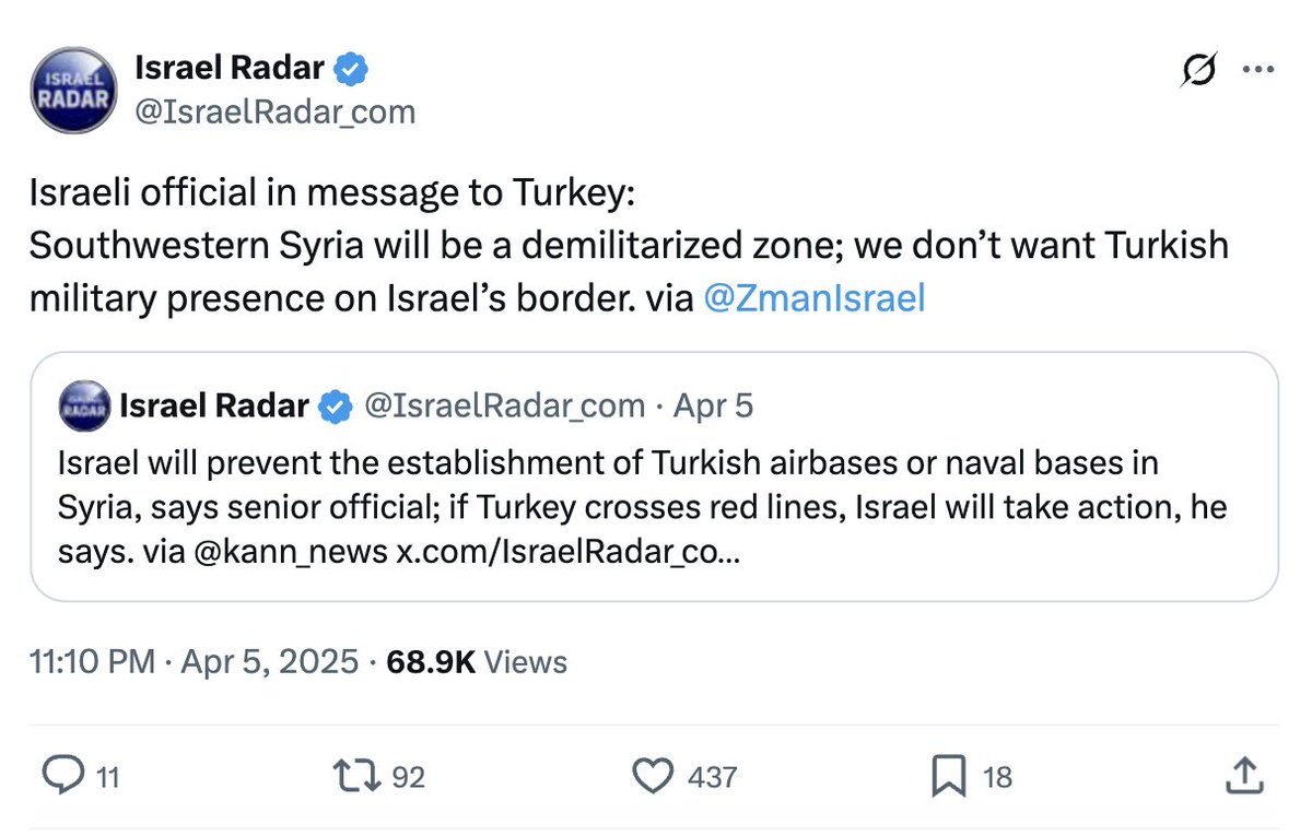 Because Turkey was planning to move Hisar air defense systems into Syria, giving Ankara a strategic military foothold. x.com/IsraelRadar_co…