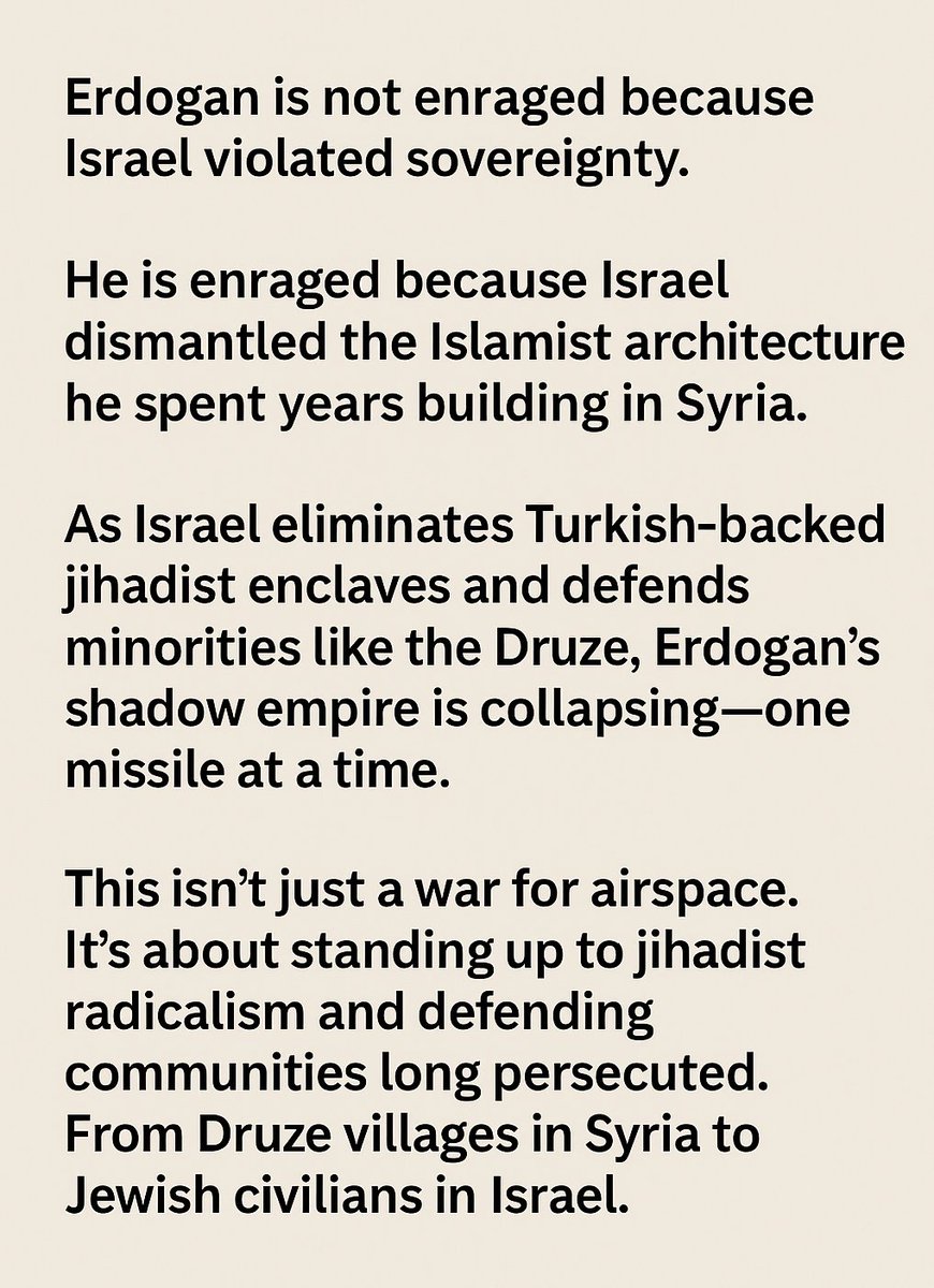 As Israel eliminates Turkish-backed jihadist enclaves and defends minorities like the Druze, Erdogan’s shadow empire is collapsing—one missile at a time.