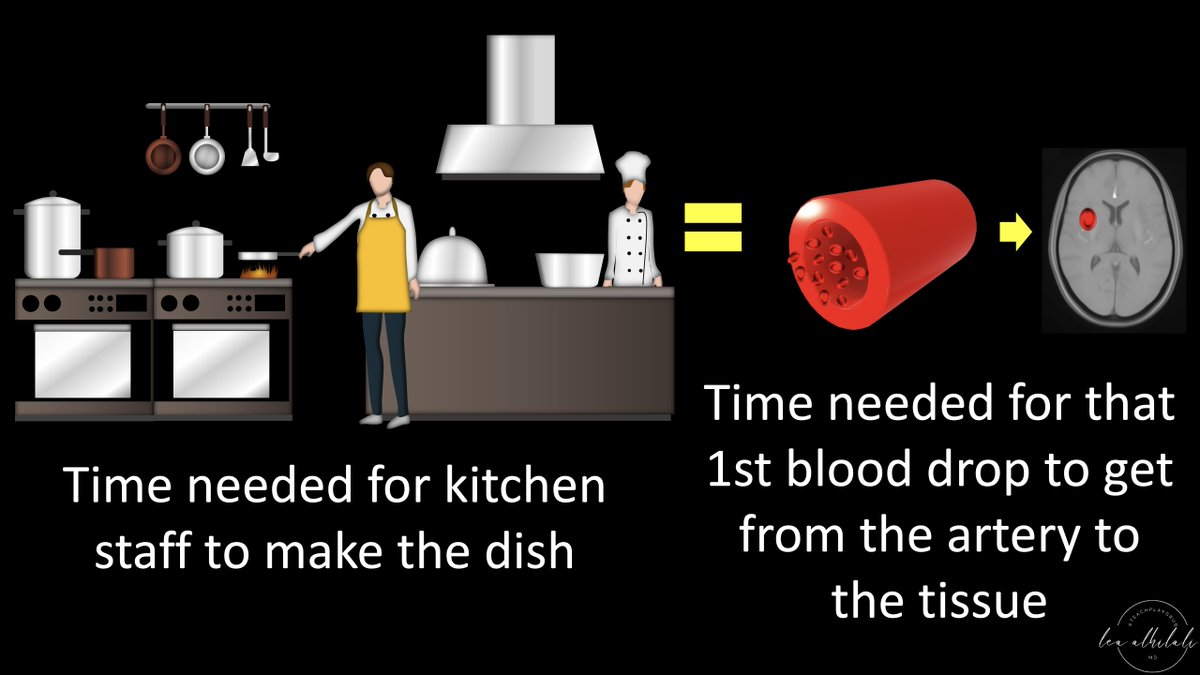 It’s equal to how long it takes the restaurant to get the ingredients from the supplier—how long it takes the artery to get blood after injection
