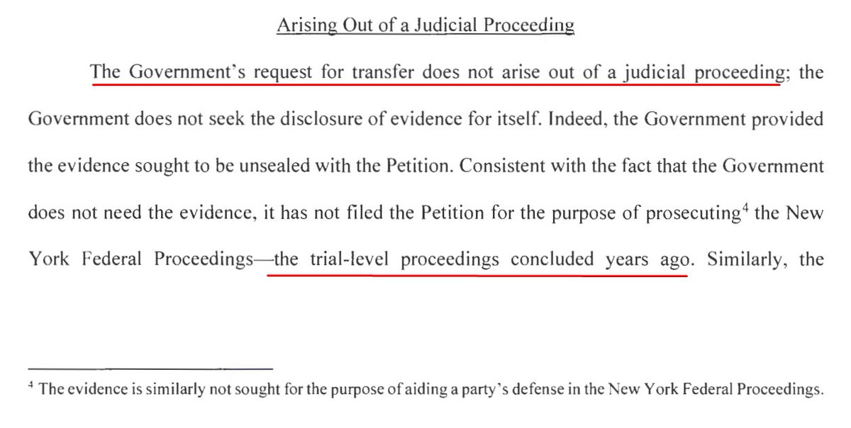 Furthermore, "The Gov't's request... does not arise out of a judicial proceeding... the trial-level proceedings concluded years ago."