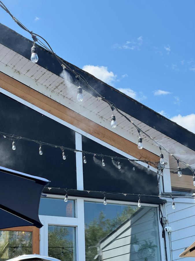 Alright, so the reason why these misting systems work so well is that the aerosol is incredibly cold. This cold mist in turn will lower the temperature of the surrounding air, leading to a comfortable environment.
