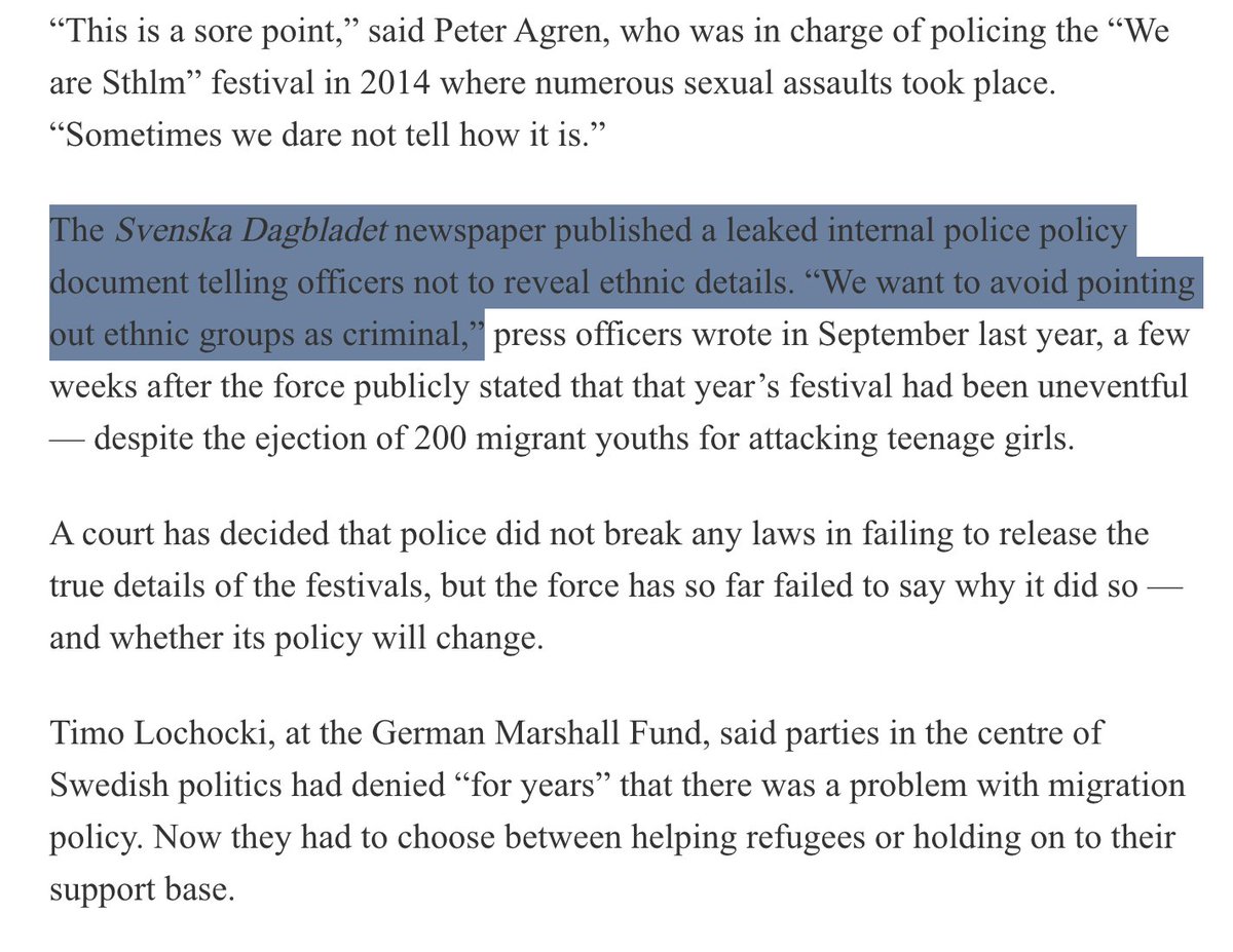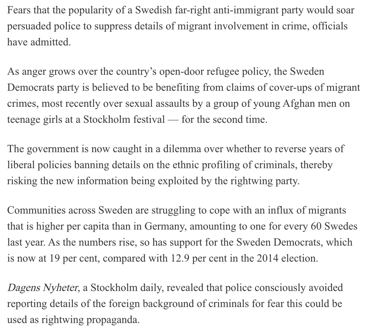 5. In Sweden. Swedish authorities protected foreign perpetrators of heinous crimes based on the fabricated idea that holding them accountable would lead to increased racism.