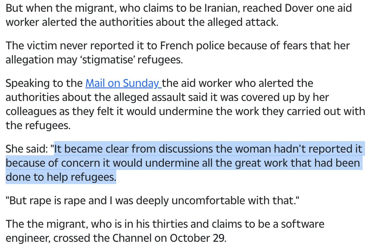 3. Activists in Calais, France, were well aware that one of their colleagues had been raped by a migrant. Yet they encouraged her not to report it to the police, as it would stigmatise refugees.