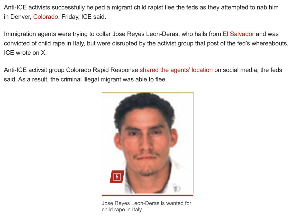 4. In the U.S. anti-ICE leftist activists helped a migrant child rapist flee feds in Colorado because of course they believe that the actions taken by ICE are considered to be 'racist'.