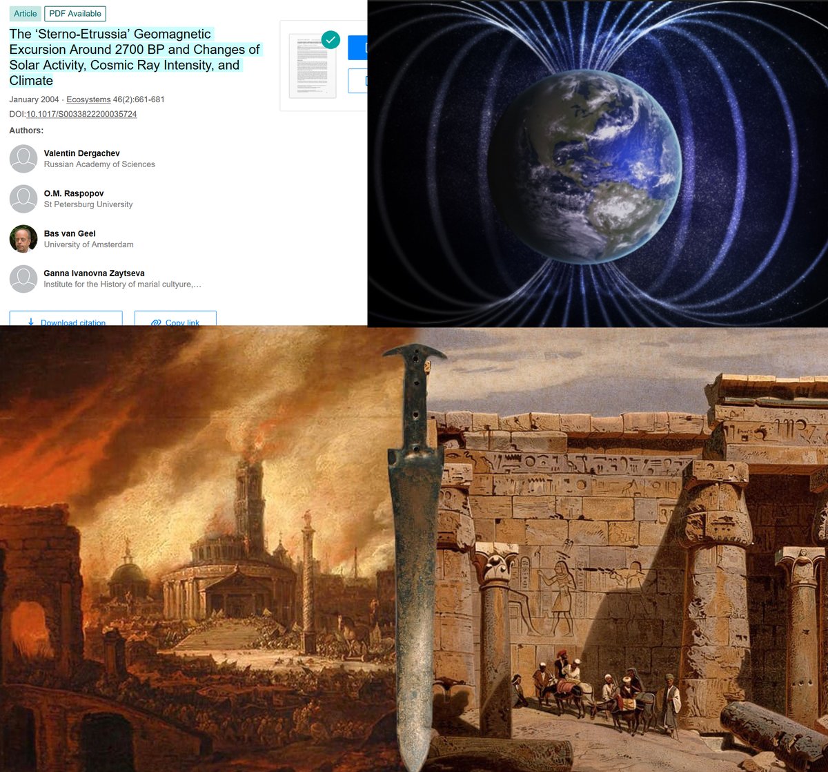 One of these events is similar to what we are witnessing today: a limited geomagnetic excursion, climate change, and mass migration.