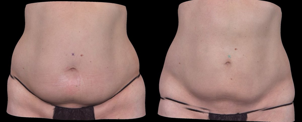 This is from Participant B, a 46-year-old woman. At baseline (left), she had severe fat accumulation warranting intervention. Much-improved by visit 7 (right)!