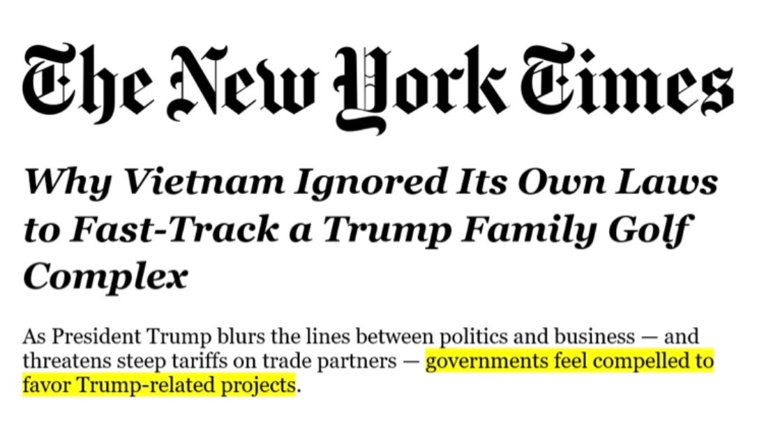 One example: as a country sought relief from his tariffs, it fast-tracked the approvals for a Trump-owned golf course, with “special attention” from Trump himself.