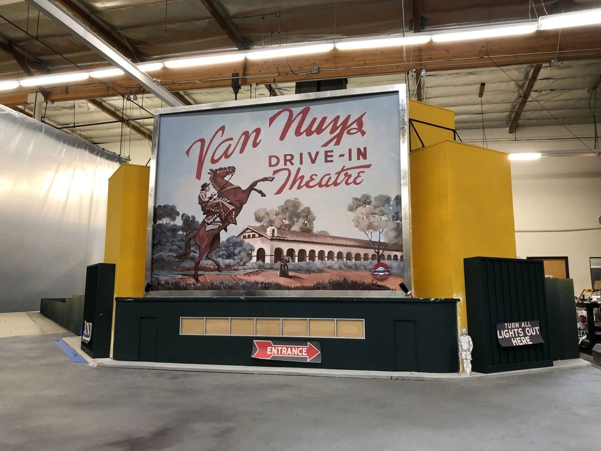 Pandora’s Box – a club on Sunset Strip – had been demolished so Ling recreated it in a café. The James Dean mural was created for the movie. And the Van Nuys Drive In was made as a large-scale miniature.