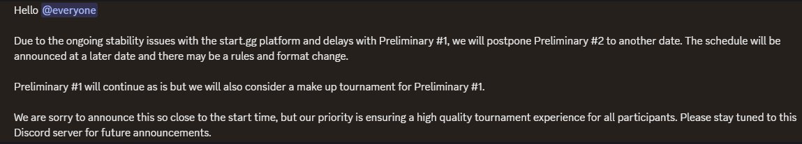 While i understand the post and why it was done, I just can't accept the apologies. Blaming StartGG on a lot of cases is still trying to avoid the fact further testing should have been done.
