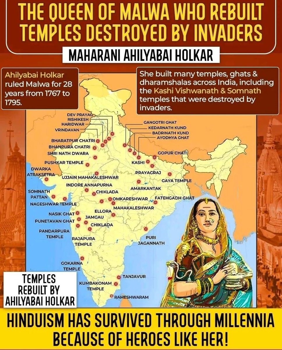 🧵#Thread Maharani Ahilyabai Holkar, the warrior queen of Malwa (1767–1795).