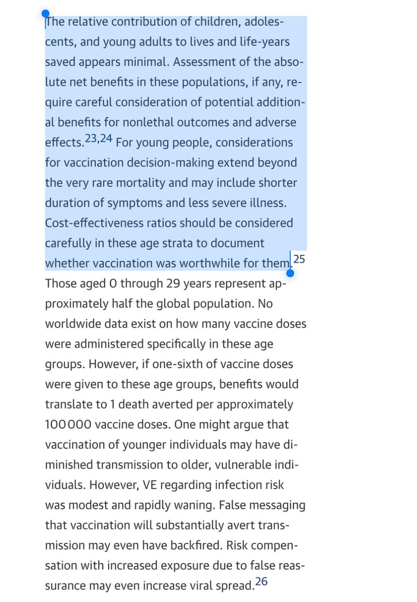 1/ „Insgesamt mussten 5400 Menschen geimpft werden, um ein einziges Leben zu retten - bei den unter 30-Jährigen stieg diese Zahl jedoch auf 100000 Impfungen, wie es in der Studie heißt. … ‚Es ist grundsätzlich sinnvoll, sich auf die Bevölkerungsgruppen zu konzentrieren, die …