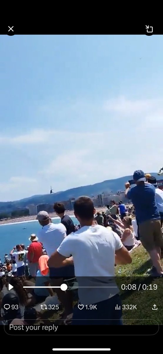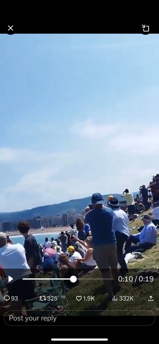 There is a lot of commentary on this rather alarming video of a fly past that very nearly had a tragic ending. Lots of theories out there - here’s mine! I’ll use snapshots from the second video to explain what I think happened. Spoiler alert: I think it was pilot error.🧵1/7