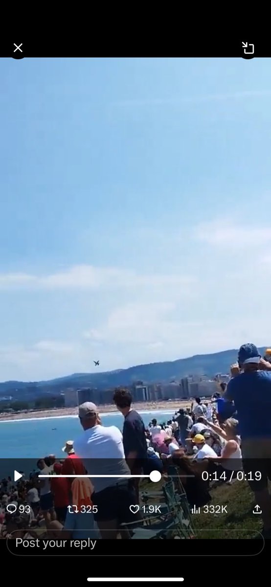 2/ An EF-18 of the Spanish Air Force was performing at the Gijón Air Festival held on Sunday July 27 over San Lorenzo Bay in Asturias, Spain: it’s not clear if it was meant to be a full display or an “enthusiastic” flypast - I suspect the latter. festivalaereogijon.com/#programa