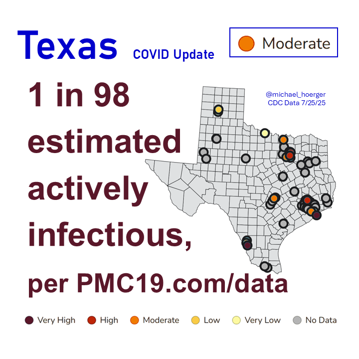 Texas has fallen from High to Moderate, but it appears to be an artifact with many sites going offline this week.