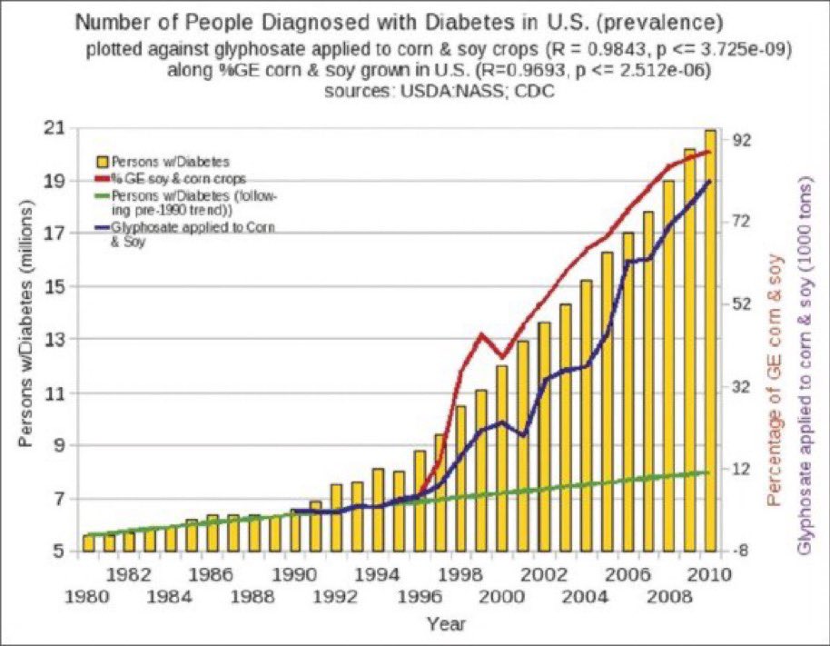 For 40 years, Monsanto’s RoundUp has clearly caused dozens of diseases to explode in lockstep.
