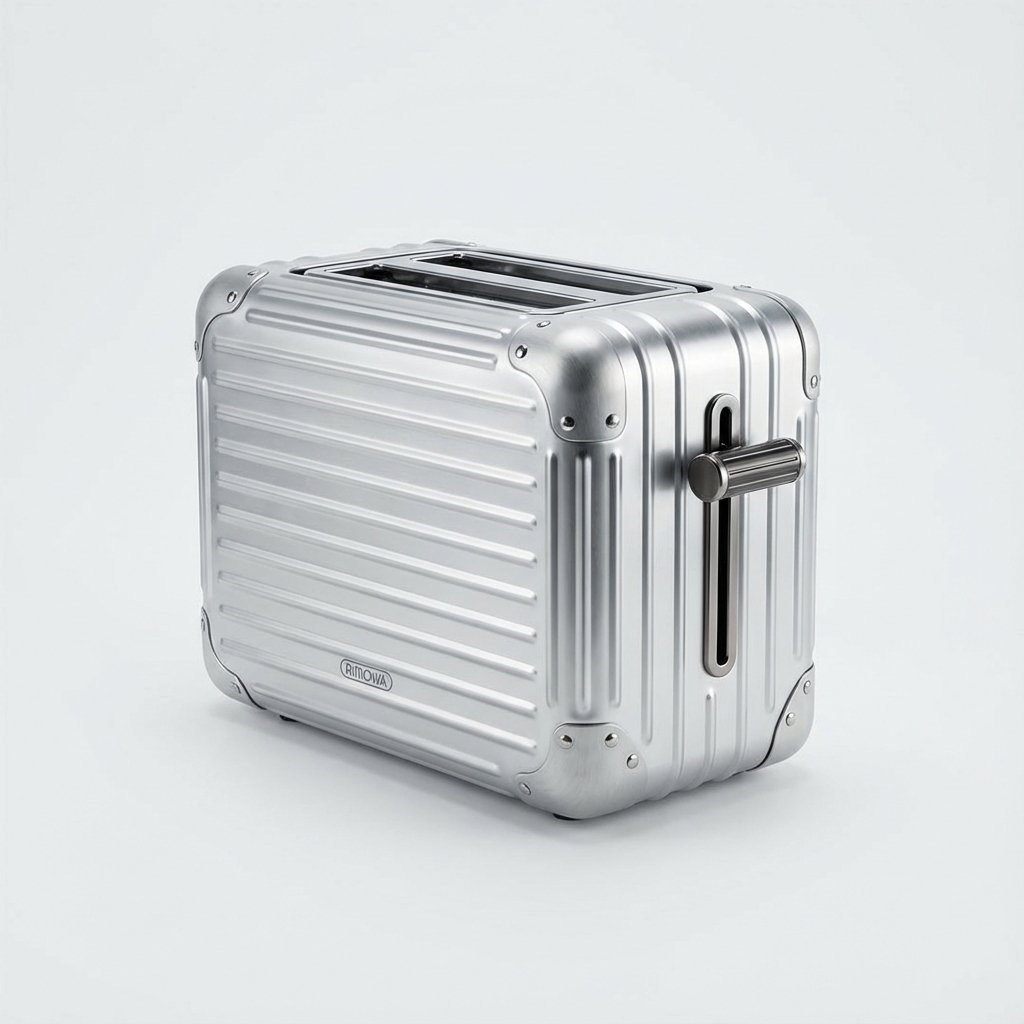 Apply Texture Mapping: Wrap the "Unexpected Object" in the "Brand DNA". Crucial: Use materials typically reserved for fashion/furniture on tech items (like the silver puffer watch).