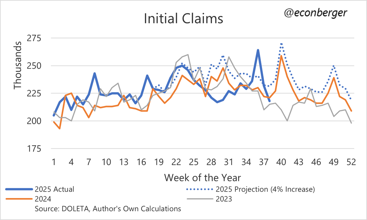 1/ An extremely concerning jump in initial claims to 263K (highest since the fall of 2021). This data includes Labor Day weekend, so maybe it's holiday noise, but I'm worried.