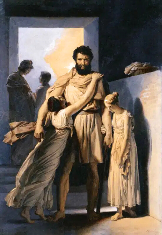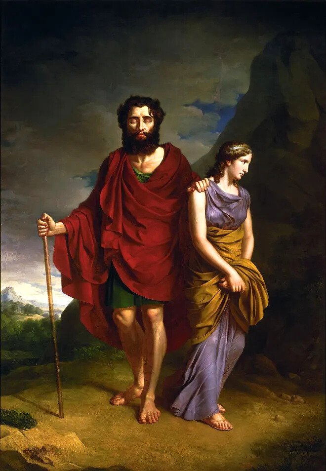 He banishes himself from city, left to live in shame as a blinded beggar Image