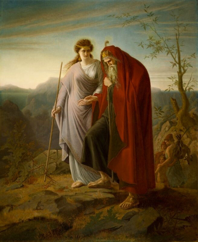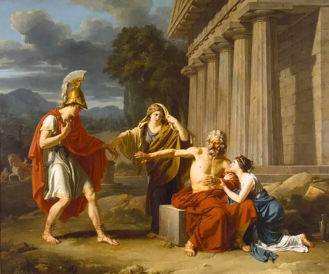 Oedipus carries his pain, perseveres, and becomes a heavenly sage Image