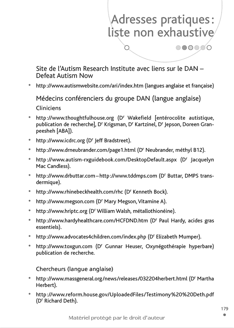 Avec une surreprésentation de références liées à l'institut pseudoscientifique Defeat Autism Now.