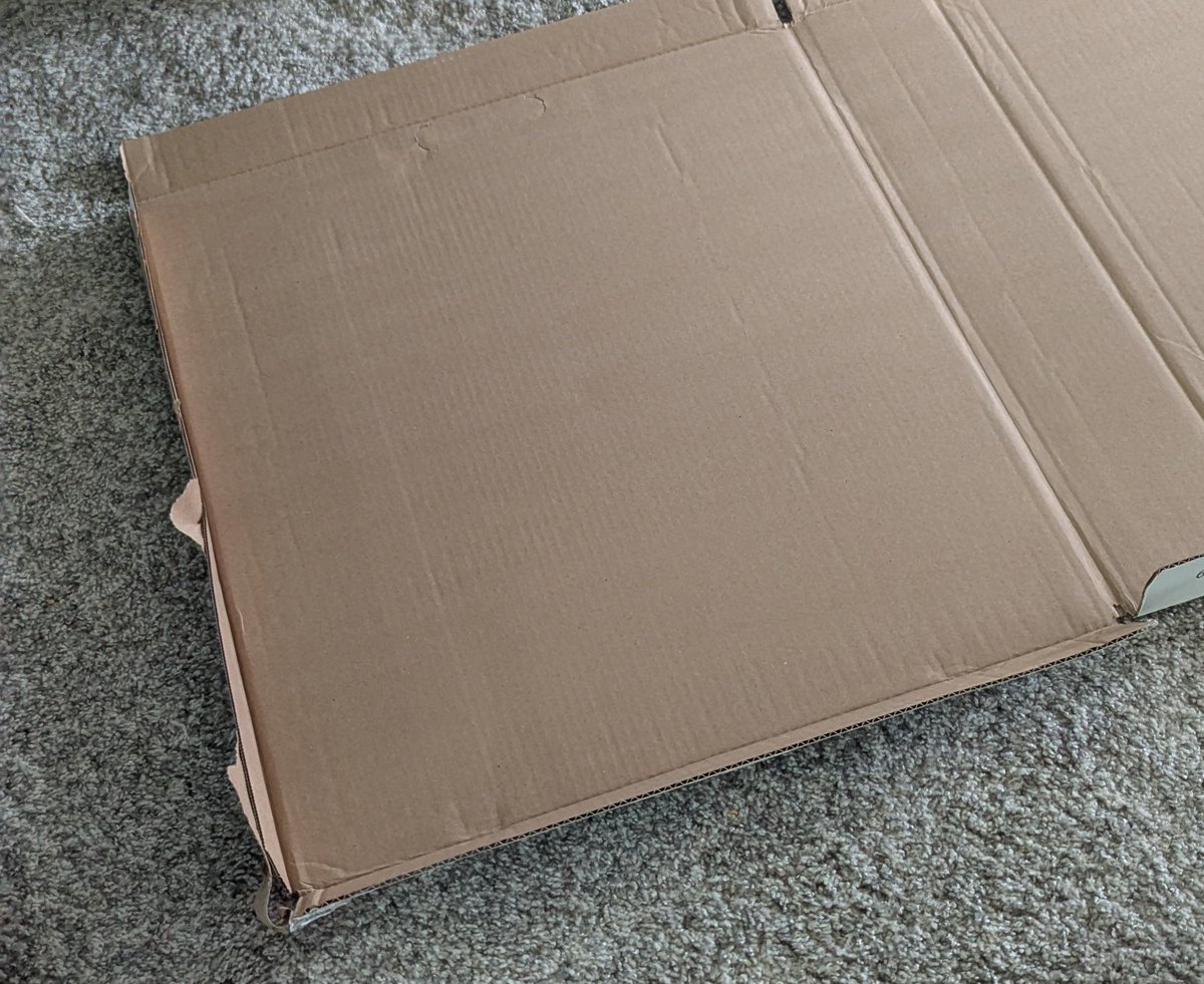 Next take the cardboard from your box fan and carefully open it up as shown. Take care to not damage the two large squares as they will both be used.