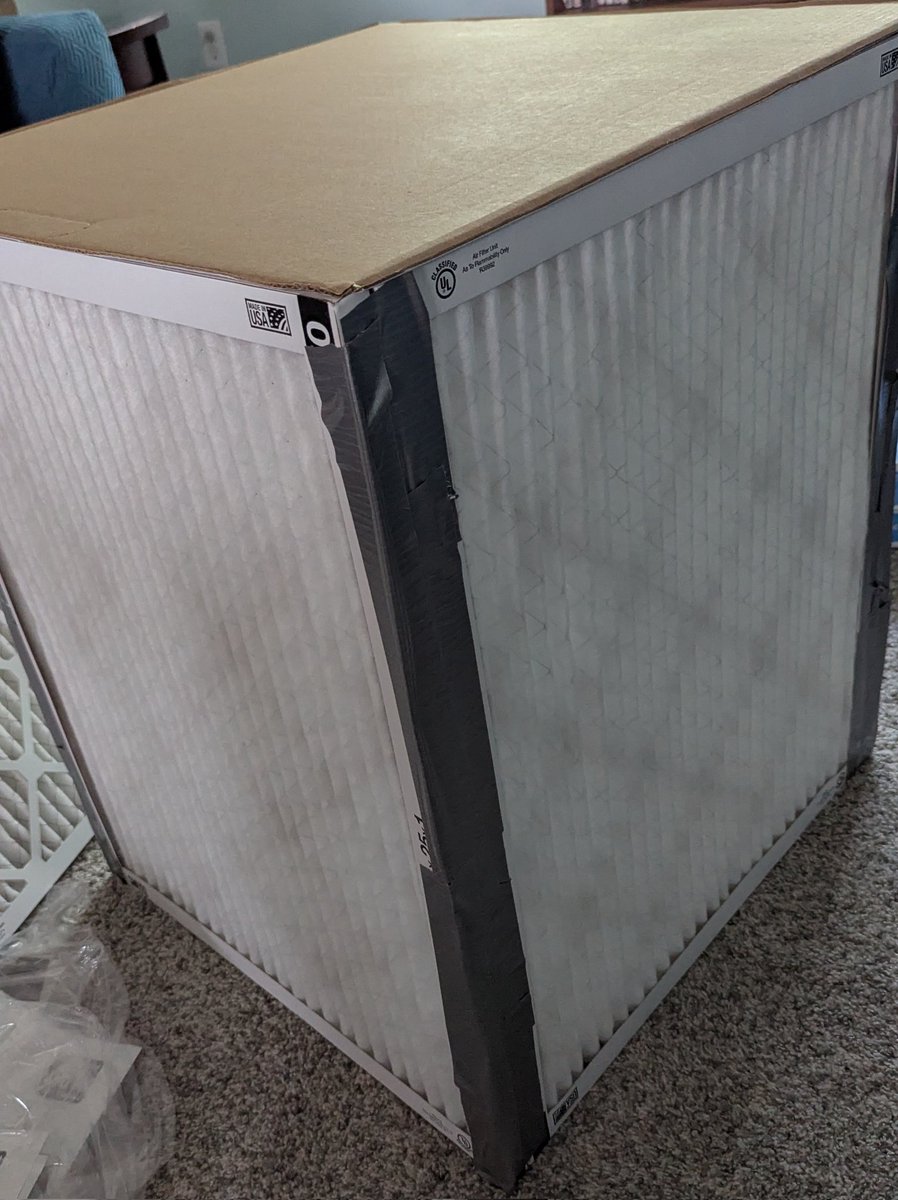Rather than spending $350+ on multiple purifiers and getting locked into proprietary HEPA filter shapes I instead looked to the COVID era. Enter the Corsi-Rosenthal box. A simple device that anyone can buy and construct with household equipment.