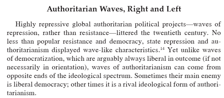 The other innovation is breaking out 'left-wing' and 'right-wing' waves of authoritarianism. It's a little reductive, and marred by the gesture to the discredited psychological authoritarianism concept thrown in at the very end, but frankly I like the general point!