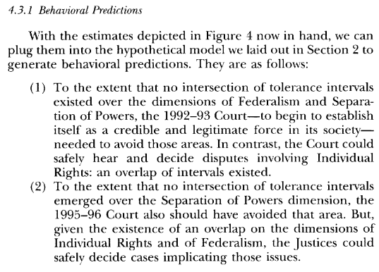 Years ago Nathan Brown and I won an award for our article on constitutional courts during 'constitutional ruptures' (i.e., periods of dispute over the political order). One of our inspirations was a great article by Epstein, Shvetsova, & Knight (2001) on "tolerance ranges."