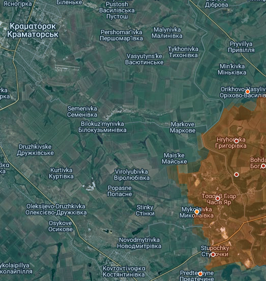 Geography: Russia is now in reach of the cities of Konstiantinovka - Kramatorsk straight ahead.