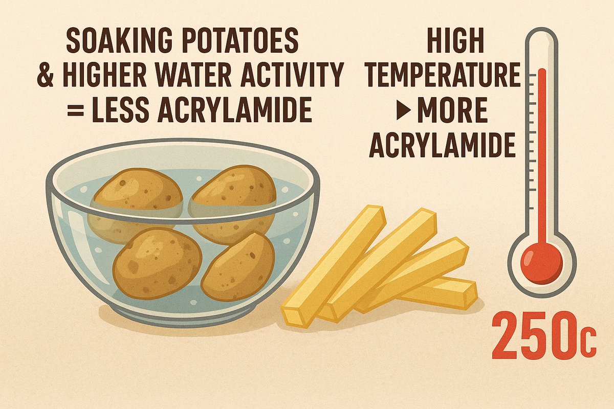 1. Temperature & Time: Higher = more acrylamide 2. Moisture Content: Drier food → more acrylamide 3. Water Activity: higher water activity and moisture content in food generally results in lower acrylamide formation.