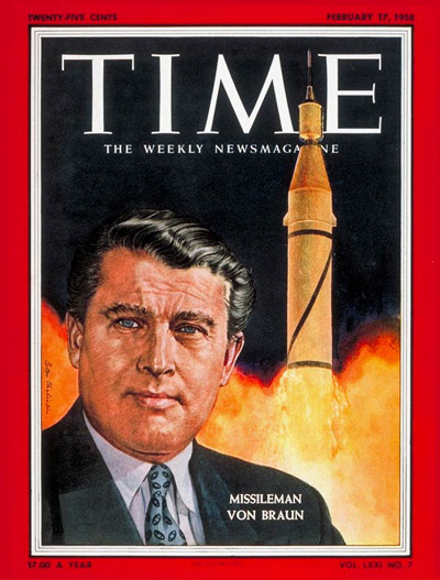 The world celebrates. Von Braun becomes a hero. TIME magazine features him on covers. Disney makes him a household name.