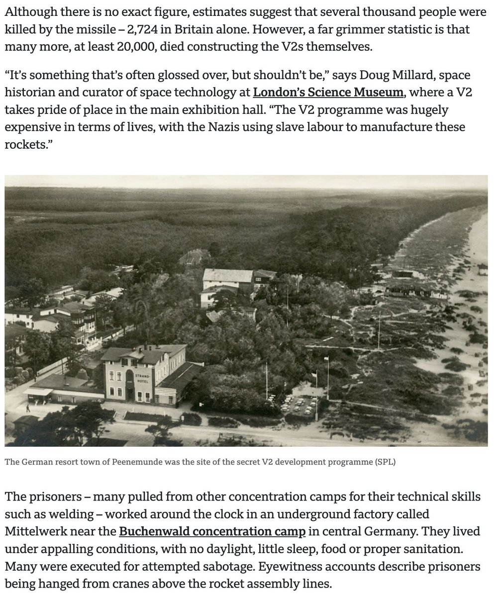 At least 20,000 prisoners died building von Braun's rockets, more than were killed by the rockets themselves.