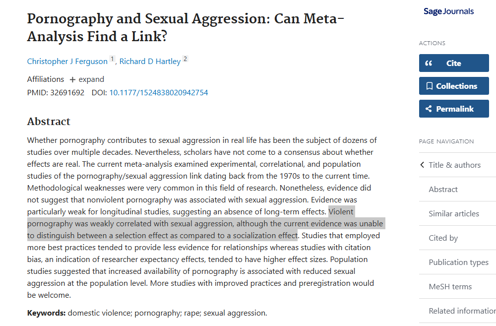 This directly contradicts her claim that more people are consuming porn and suddenly there is a rise of sexual violence against women. It just isn't true.