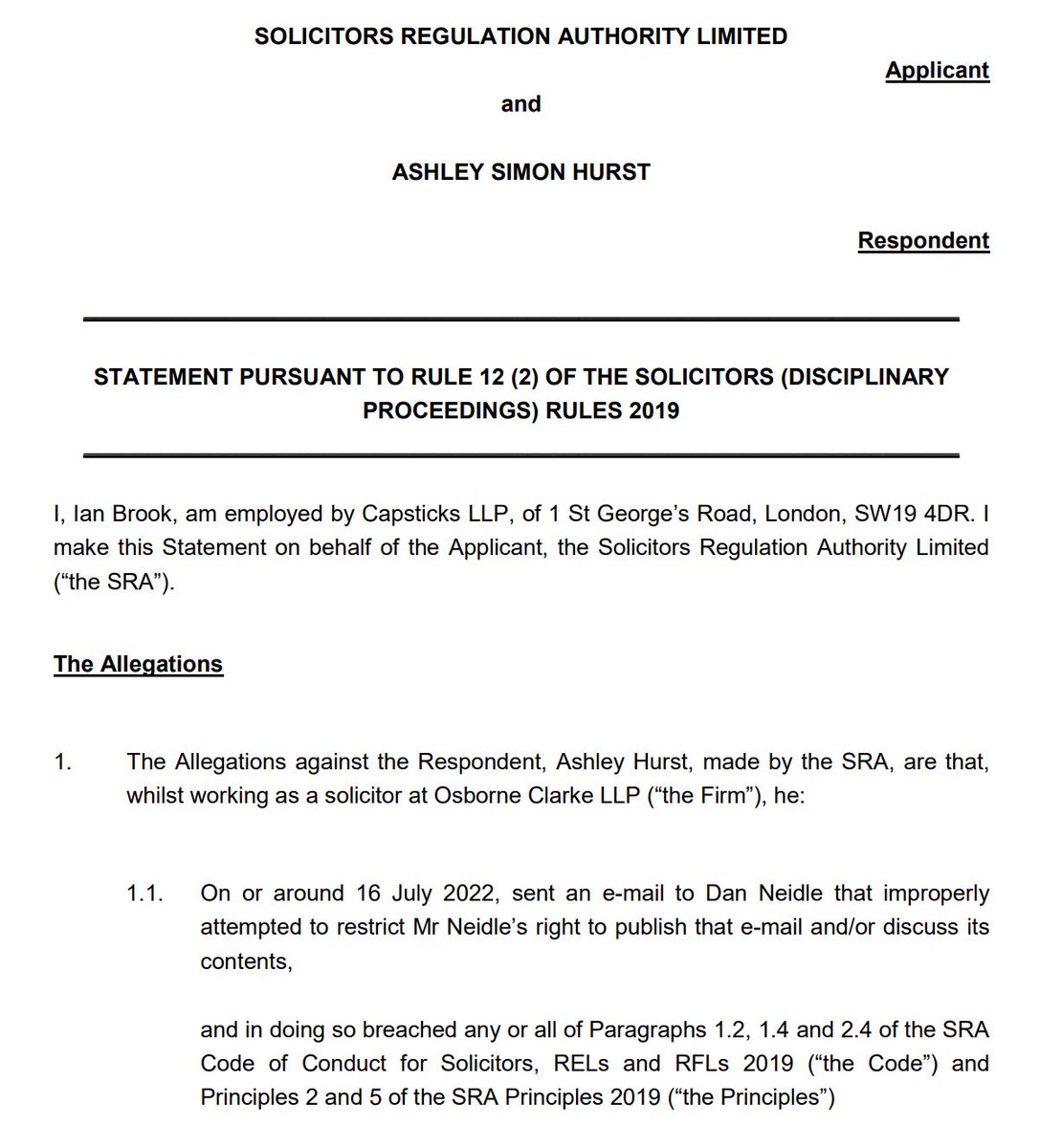 (Although I expect Osborne Clarke are paying these - the firm has backed Mr Hurst throughout. )