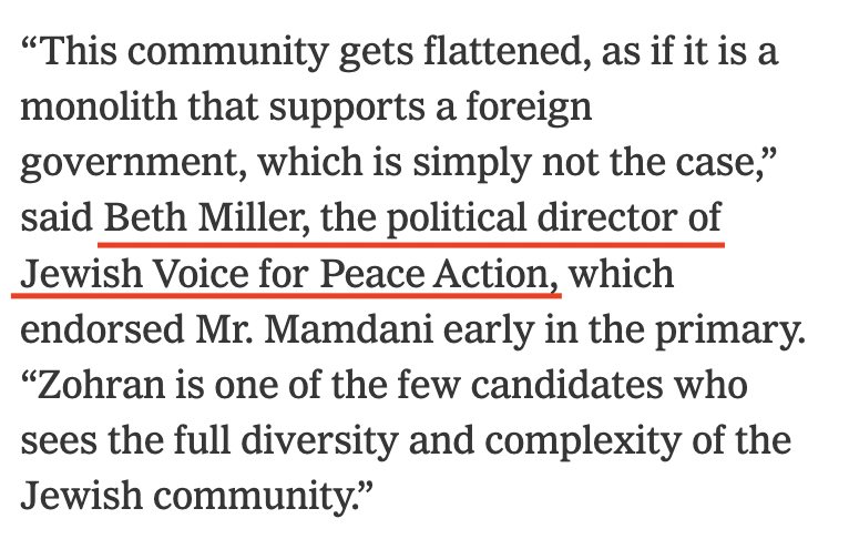 5/ No NYT puff piece for an anti-Israel candidate is complete without a quote from Jewish Voice for Peace – a fringe group that wants Israel dismantled and is barely even Jewish.