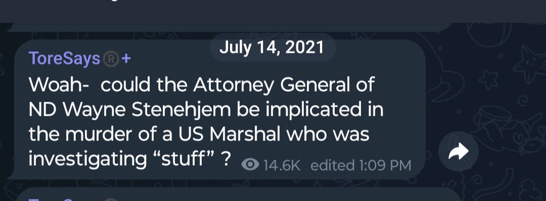 @idontexistTore "Woah- could the Attorney General of ND Wayne Stenehjem be implicated in the murder of a US Marshal who was investigating “stuff” ?"
