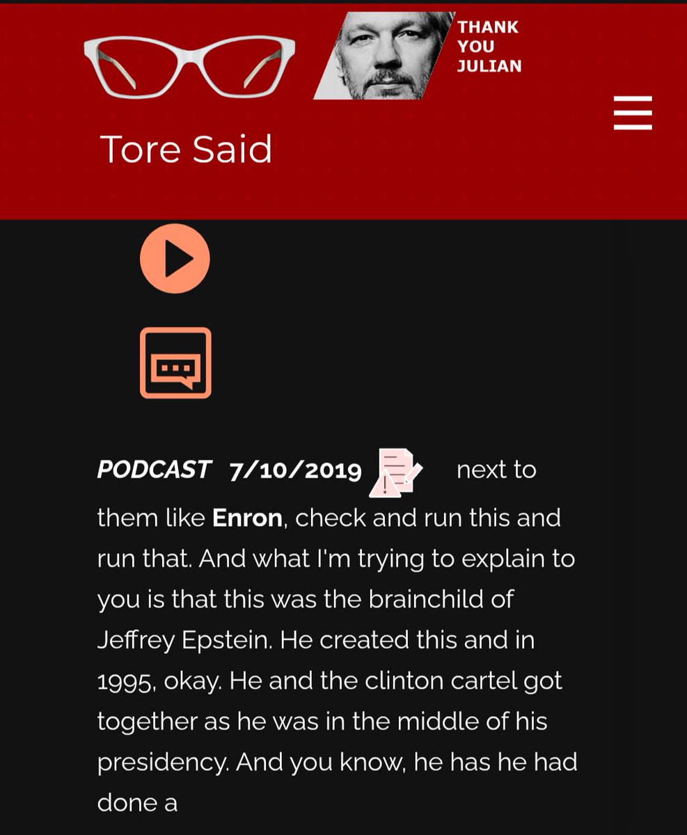 @PLATINUMNURSE @idontexistTore "like #Enron, check & run this & run that. & what I'm trying to explain to you is that this was the brainchild of Jeffrey #Epstein. He created this & in 1995, okay. He & the #clinton cartel got together as he was in middle of his presidency." ToreSays 💅 tore-says-show.simplecast.com/episodes/socia…