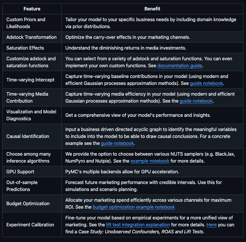 PyMC-Marketing is a state-of-the-art Bayesian modeling library that's designed for Marketing Mix Modeling (MMM) and Customer Lifetime Value (CLV) prediction.