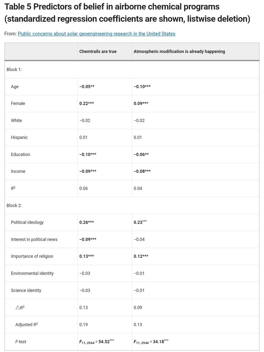 8/ Chemtrail beliefs and weather modification suspicions clustered more around younger, female, conservative, and less-educated respondents.