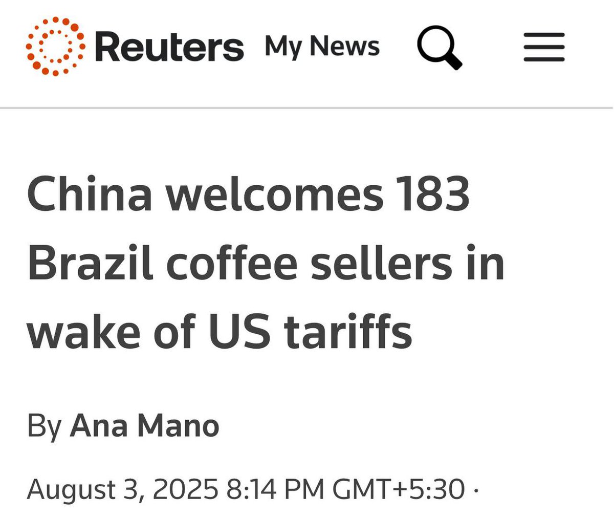 Meanwhile, China welcomes Brazilian coffee with open arms.