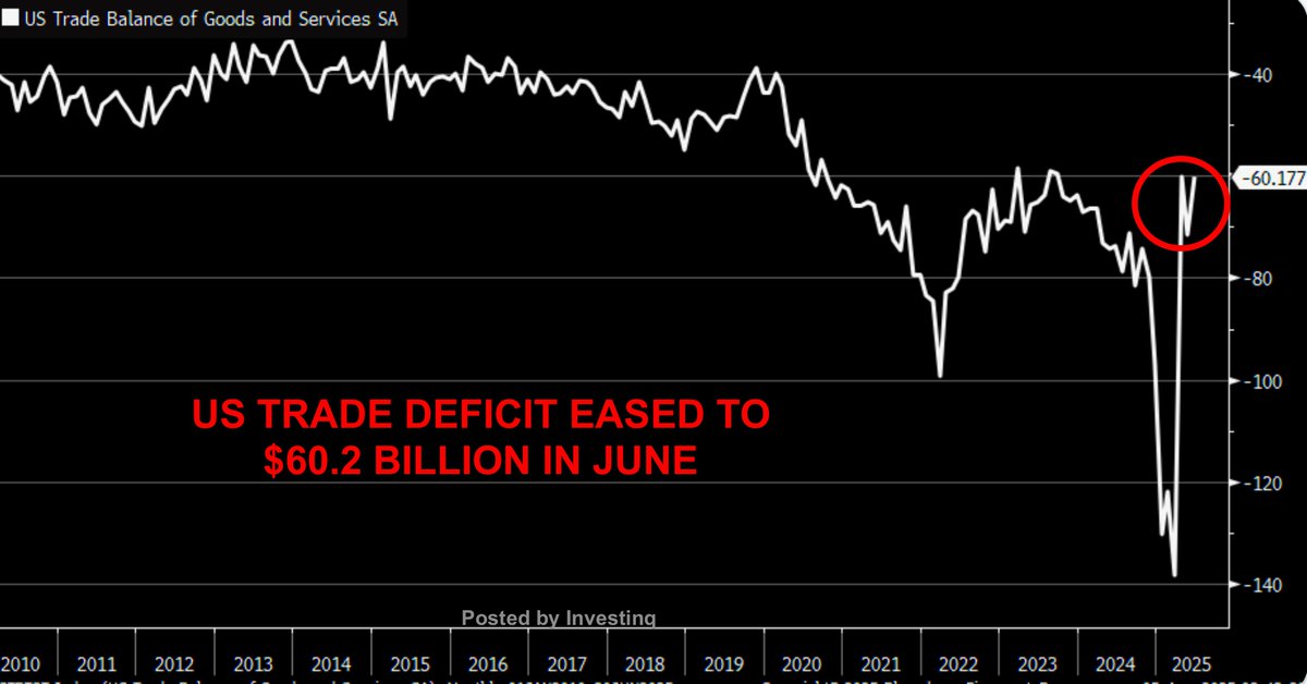 🚨 U.S. trade deficit eased to $60.2 billion in June