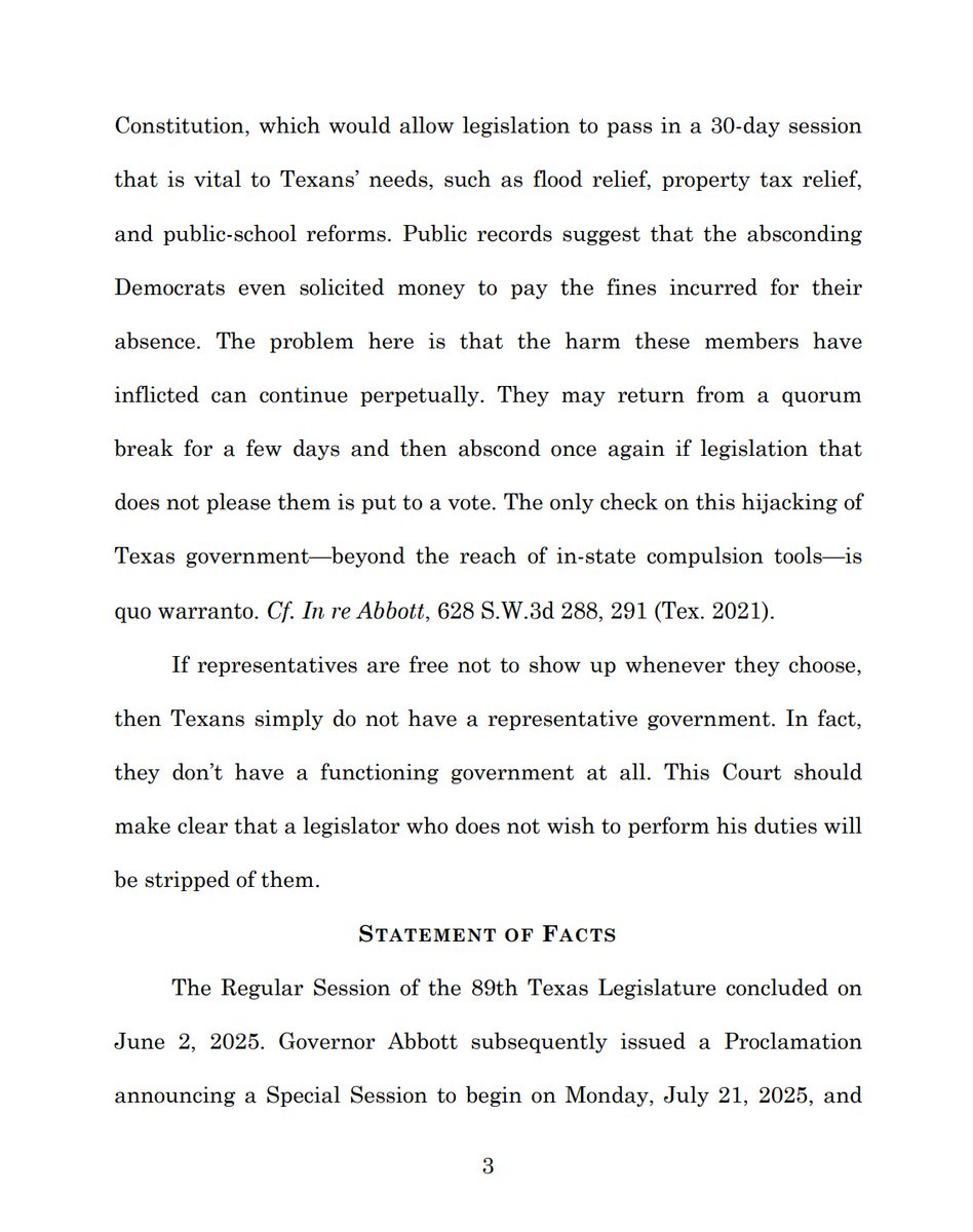 “If legislators refuse to show up, Texans have no representative government at all.”