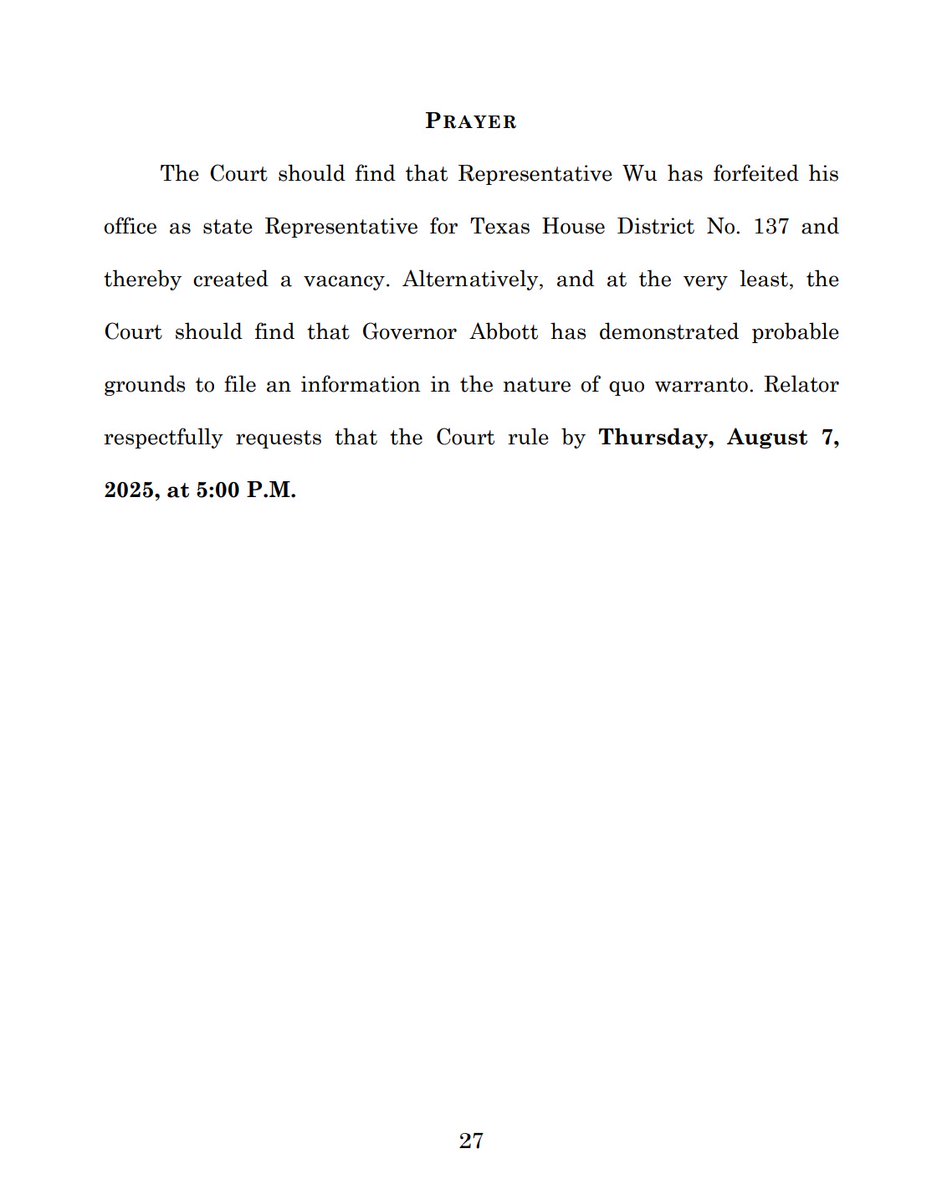 Gov. Greg Abbott has filed to remove Rep. Gene Wu from office.