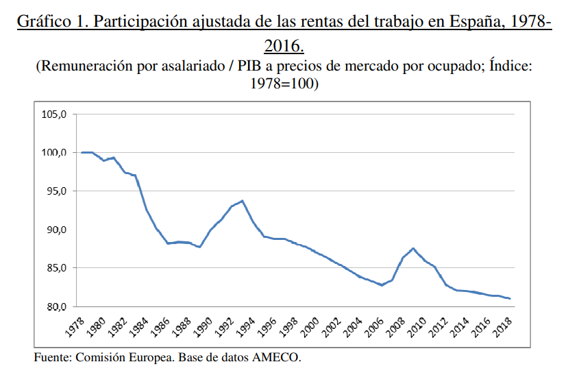 Si además se ajusta por poder adquisitivo (usando el IPC en vez del deflactor del PIB), la caída de la participación salarial real alcanza el 20 % desde 1980.