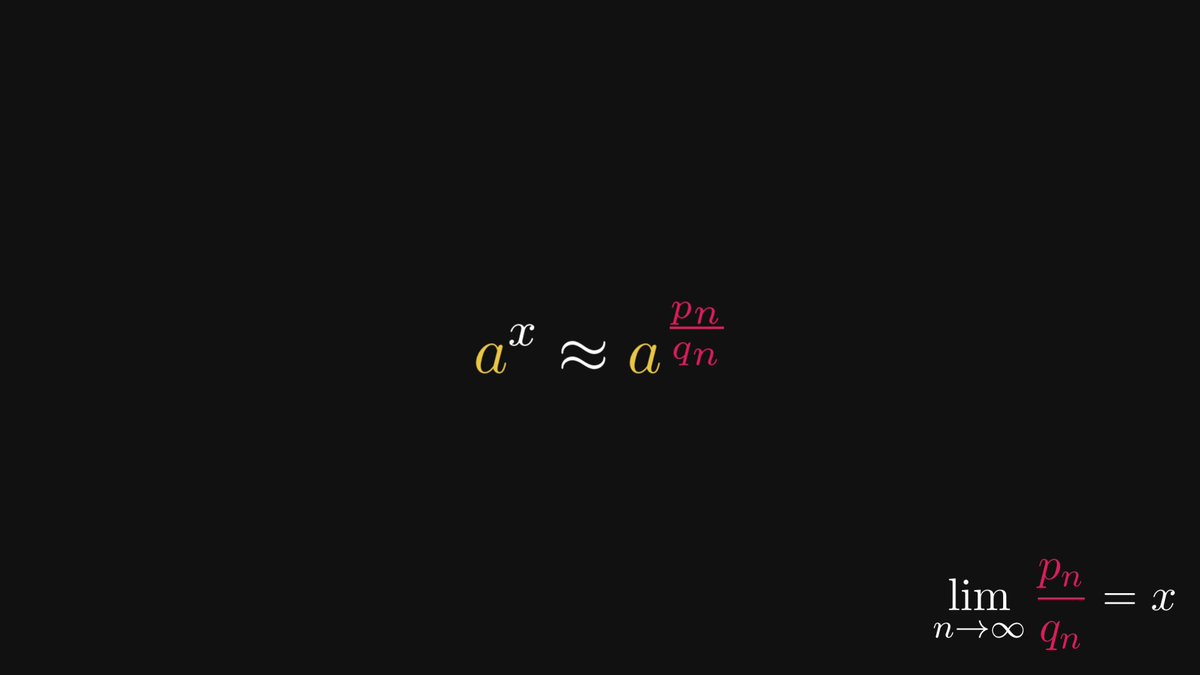 Thus, we can define exponentials for arbitrary real exponents by simply taking the limit of the approximations.