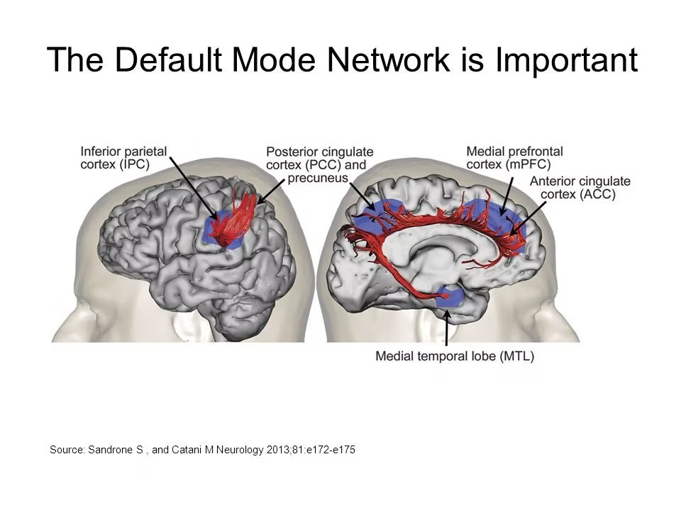 This strengthens the default mode network (DMN) and breaks rumination patterns.