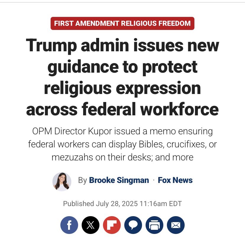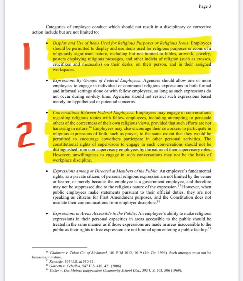 1) Here comes more federal government religious fanaticism. It gives federal employees the “right” to proselytize and harass other employees. Or tell them to their face their religion is wrong. And I’ll prove all of that, because I have the memo. So let’s begin⬇️