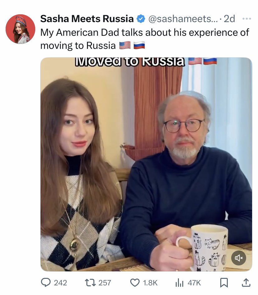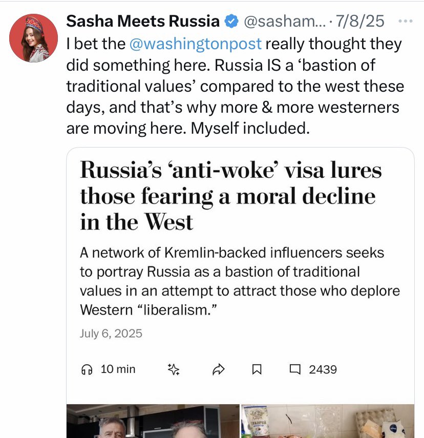 1) The vatniks are at it again, trying to convince dumbfuck American MAGA to move there. Personally, I don’t give a shit if they do. MAGA moving to Russia is fine by me. This is a newer Kremlin “influencer” account. Let’s see more next⬇️
