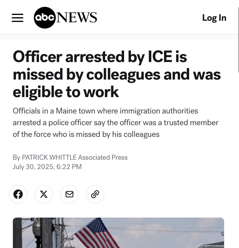 1) Here you see ICE arrested a police officer. He’s a Jamaican and he had a visa. Now here’s where it gets interesting: The town used a Homeland Security system to verify he was eligible to work in the US and he was approved. But wait’ll you see what Homeland Security says now!⬇️